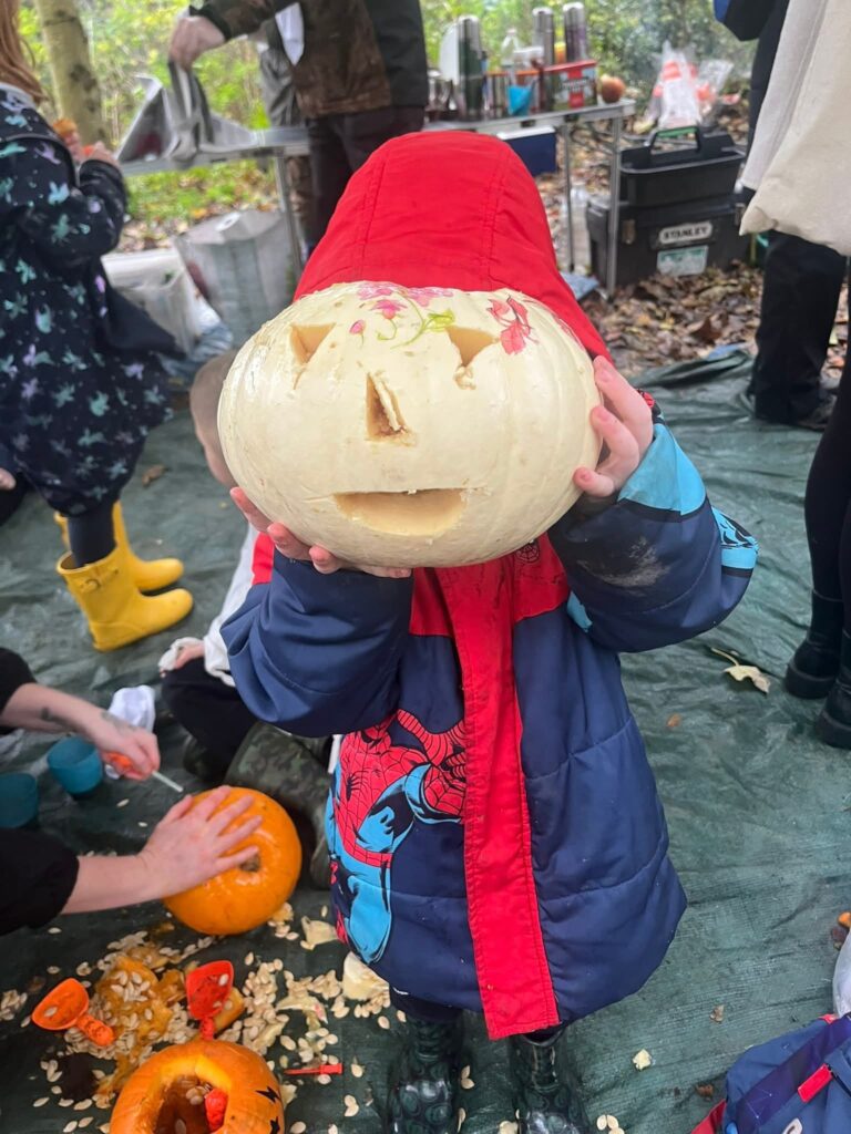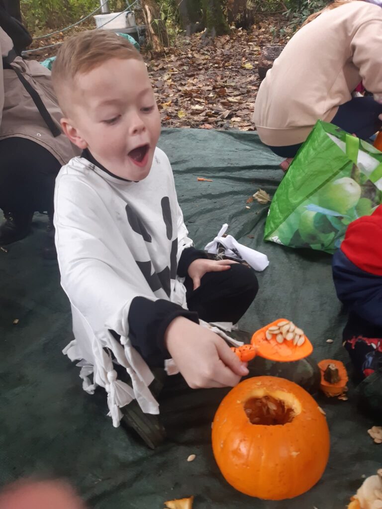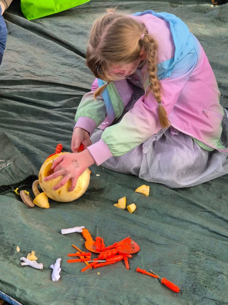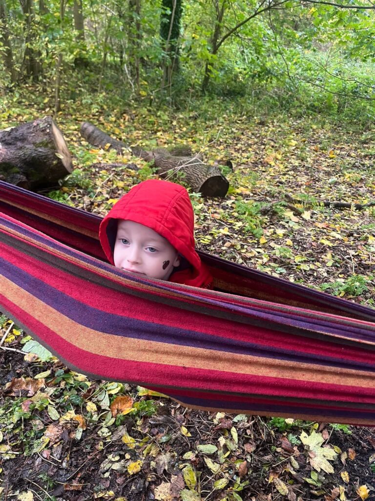 Once there, the fun truly began! We spent time exploring the forest ๐ฟ, discovering hidden nooks, and soaking in the magical atmosphere โจ. Creativity flowed as we carved pumpkins ๐, each one more whimsical than the last. For a touch of relaxation, we swung gently in the hammocks ๐, listening to the sounds of the forest around us.